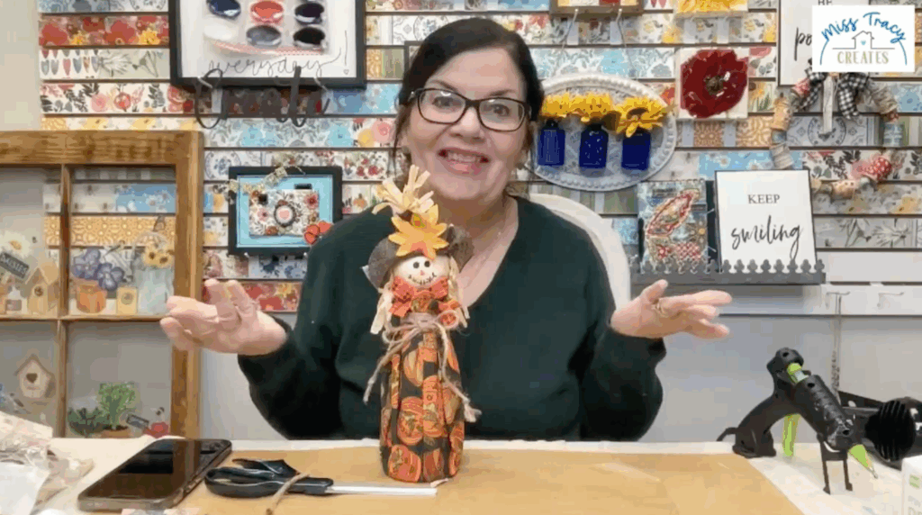 Looking for a sweet and simple fall craft to make with your grandkids or as part of a weekend DIY session? This no-sew standing scarecrow is not only easy to make – it’s affordable, customizable, and downright adorable. Using fabric scraps, Dollar Tree finds, and a little creativity, you can create a standing scarecrow perfect for your fall decor or table centerpiece.