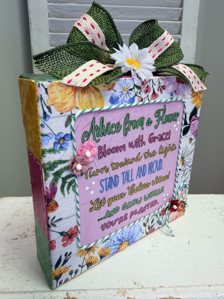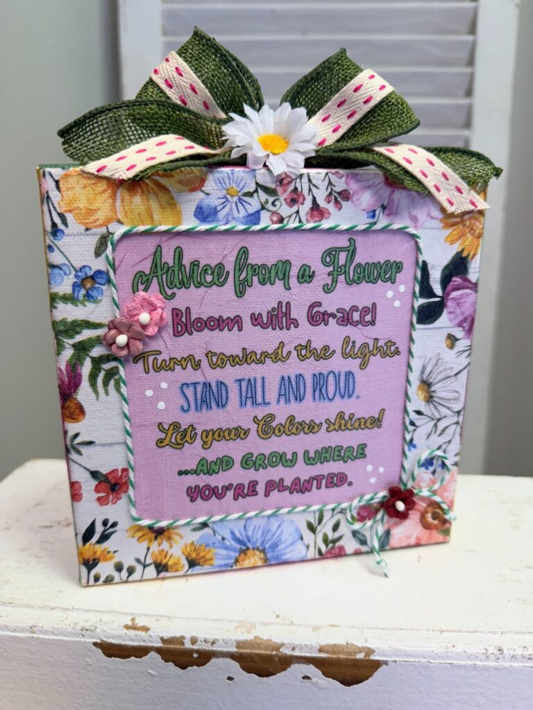If you’re looking for a simple spring craft that is both beautiful and meaningful, this Advice from a Flower canvas is the perfect project to try. This easy napkin art tutorial walks you step-by-step through creating a bright and cheerful piece using Mod Podge, decorative napkins, ribbon, and a few embellishments. It’s especially perfect for spring decorating, Mother’s Day gifts, or adding a little encouragement to your space!